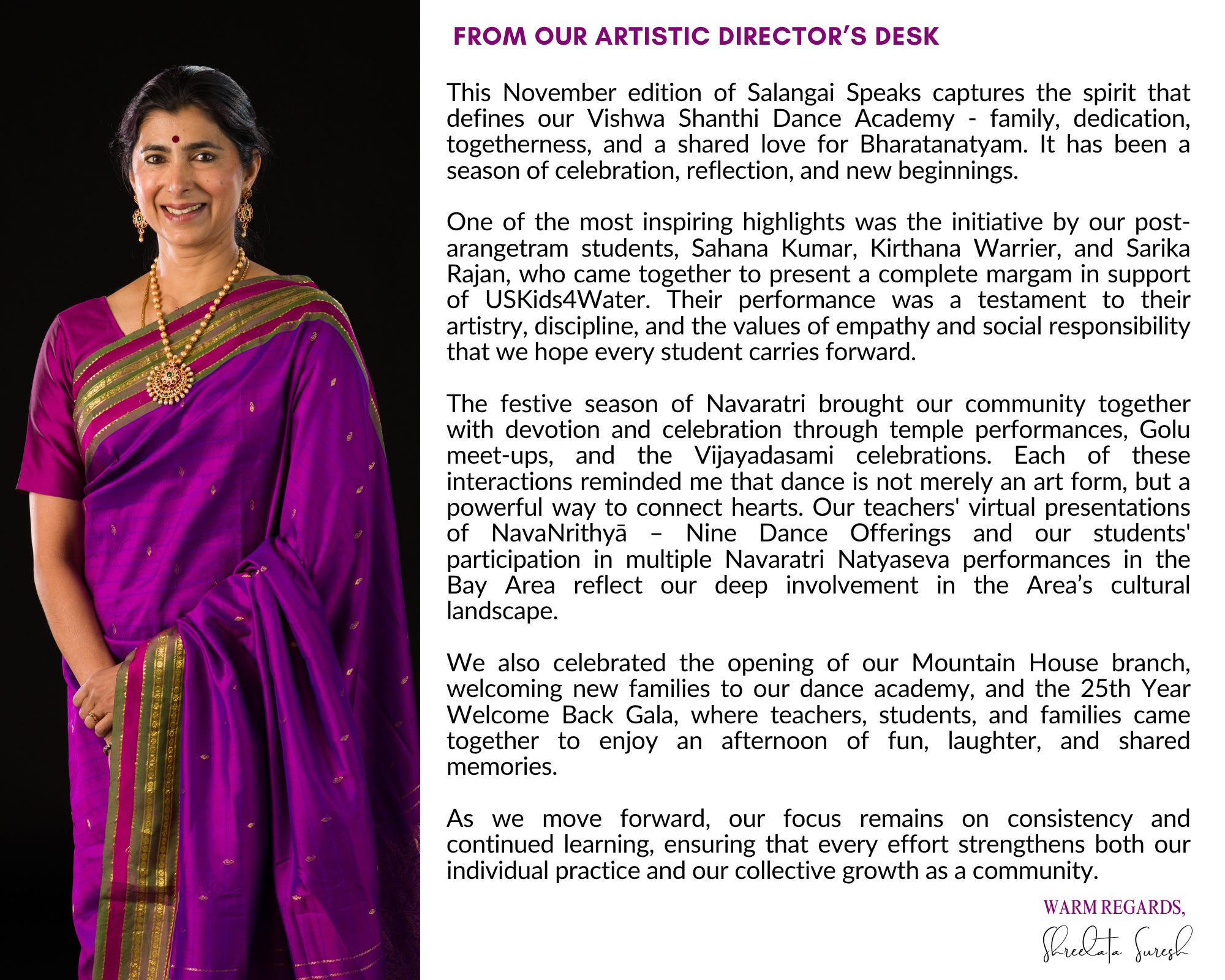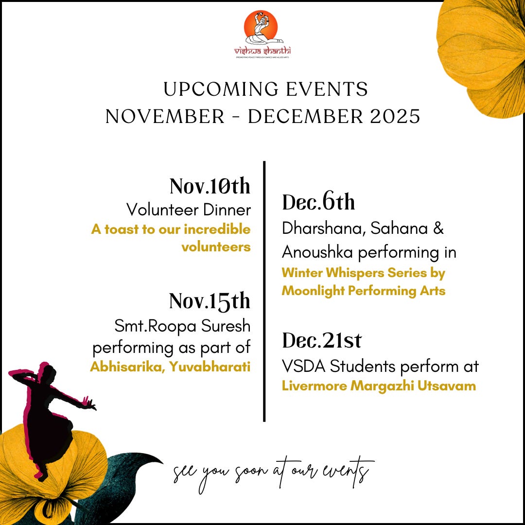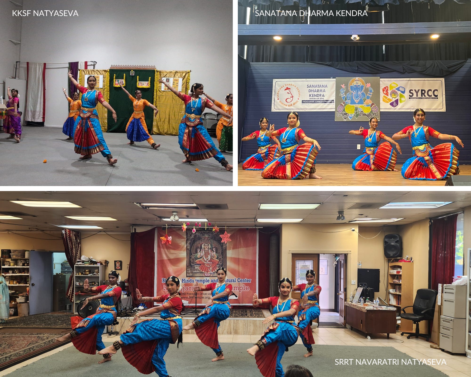 It was an honor for our Academy dancers to participate in the Navarathi Natyaseva performances at various Bay Area temples, including the Sanatana Dharma Kendra, Kanchi Kamakoti Seva Foundation, and Sri Raja Rajeshwari Temple.